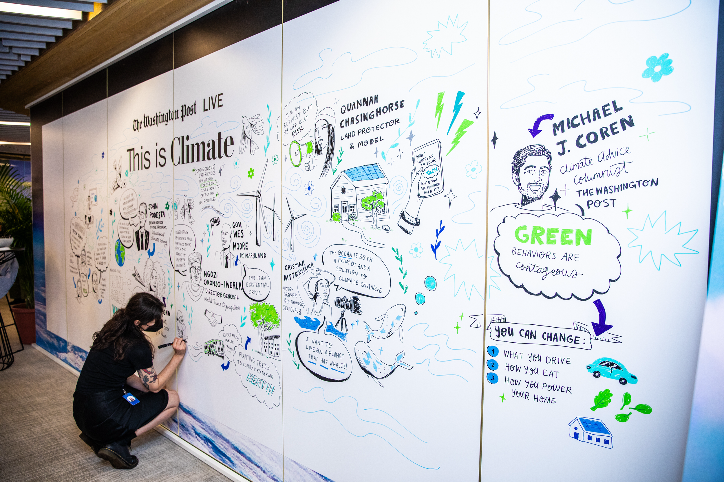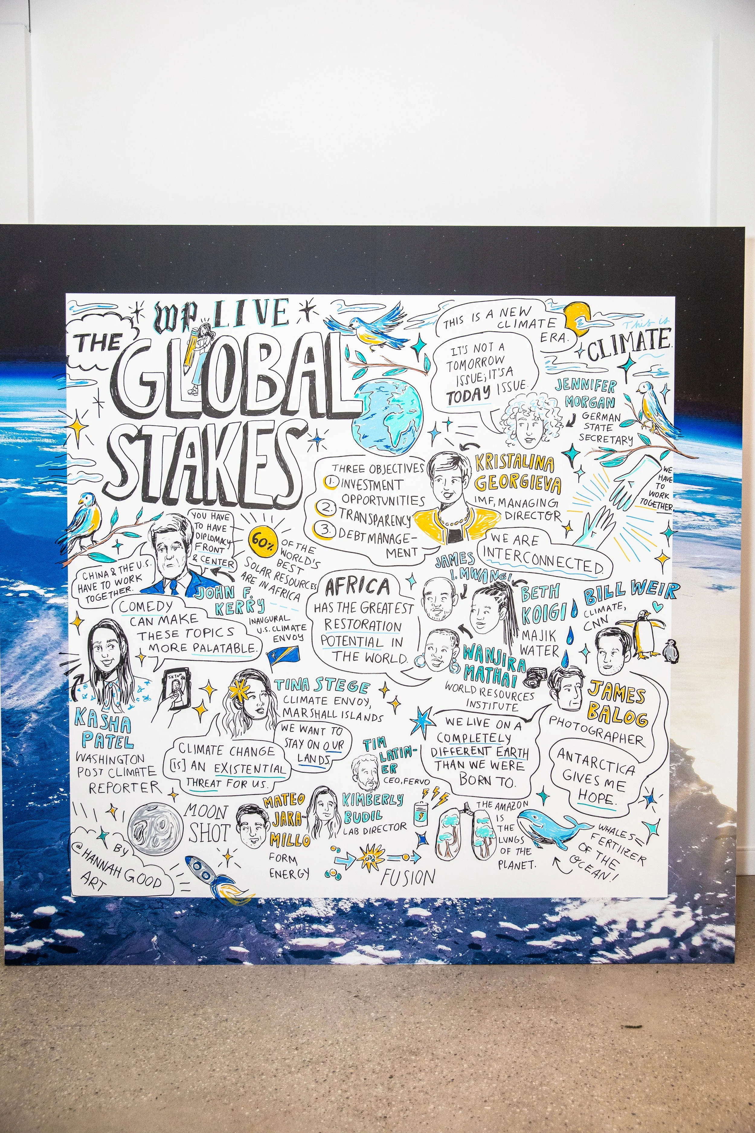 Summits featuring my live illustration include the 2023 Global Women’s Summit, Election Night 2024, and the 2024 Global Climate Summits in New York City and Washington, DC.